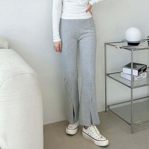 [셀럽하우스]여성 SSKR4268 핀턱 앞트임 슬림핏 부츠컷 트레이닝 바지 골지
