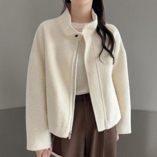 [신상오픈런]여성 울혼합 하이넥 부클 하프코트 무지컬러
