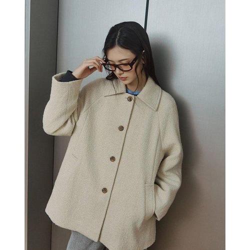 룩캐스트 헤일리 울 부클 하프 코트_버터 / HAILY WOOL BOUCLE HALF COAT_BUTTER