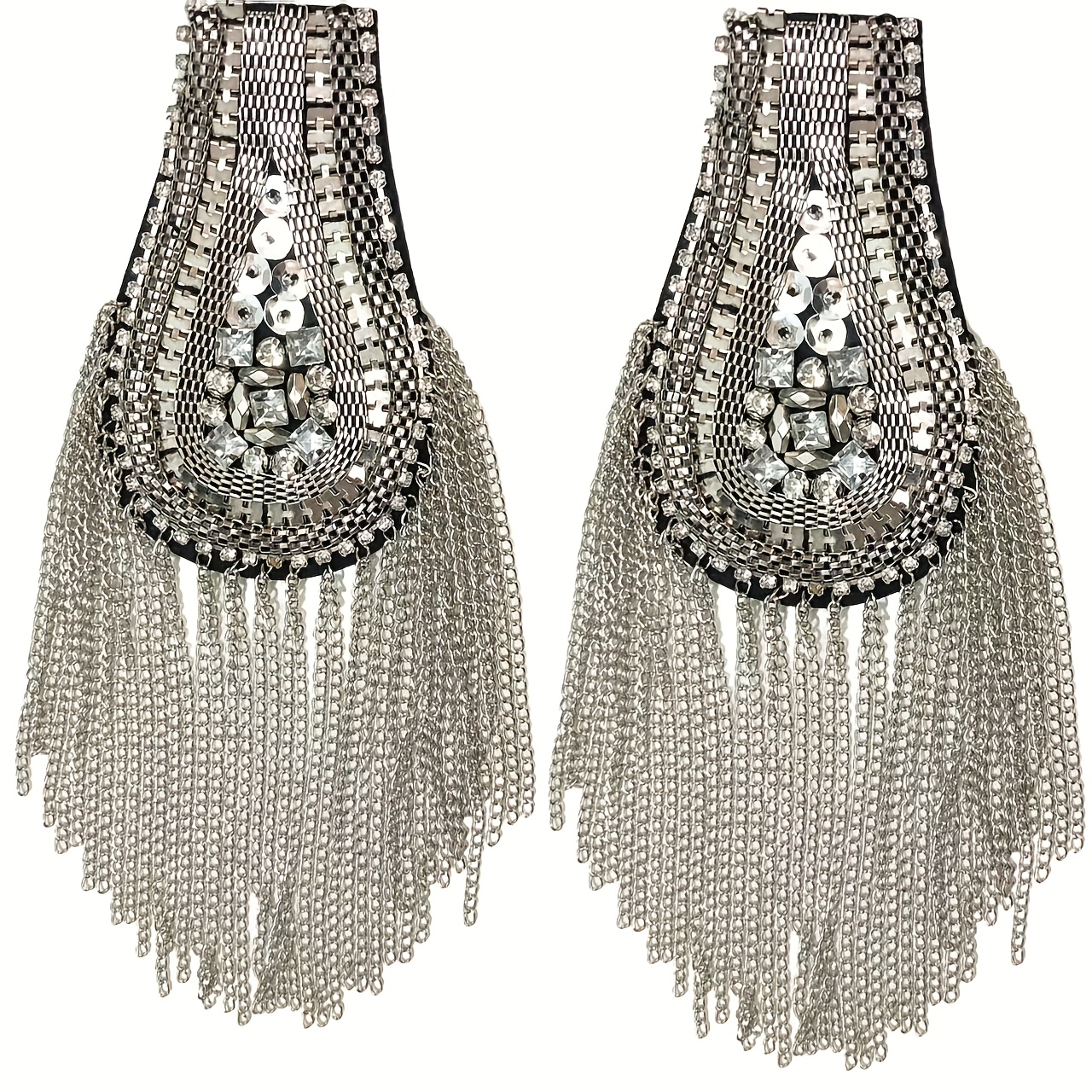 TEMU 정교한 골드 및 실버 숄더 배지 액세서리 2개, 유리 프リン지 체인 숄더 배지 패치, 트렌디하고 레트로한 숄더 배지가 특징인 정장 공연용 DIY 의상 액세서리