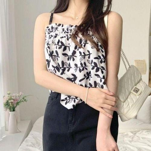 [에이치플러스몰]뷔스티에 블라우스 추천 나시 프릴 꾸안꾸 리본 휴양