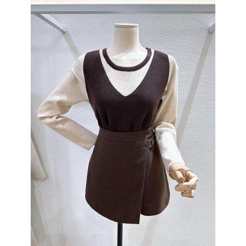 [요즘룩/꾸안꾸] 레이어드 니트+뷔스티에 세트