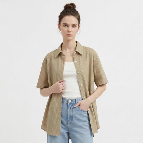 여성 카라넥 스트라이프 데일리 반팔 남방 셔츠 EGG-WBL-21203-브라운