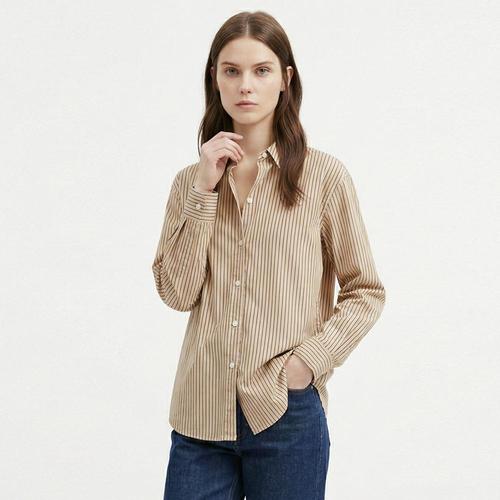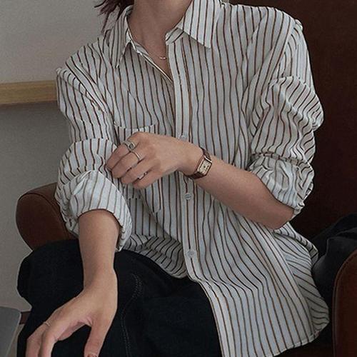 여성 카라넥 스트라이프 데일리 루즈핏 셔츠 NARU-WSH-21142-브라운