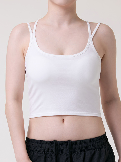 [와이에스몰] 캡 내장 브라탑 끈조절 크롭 탑 끈 나시