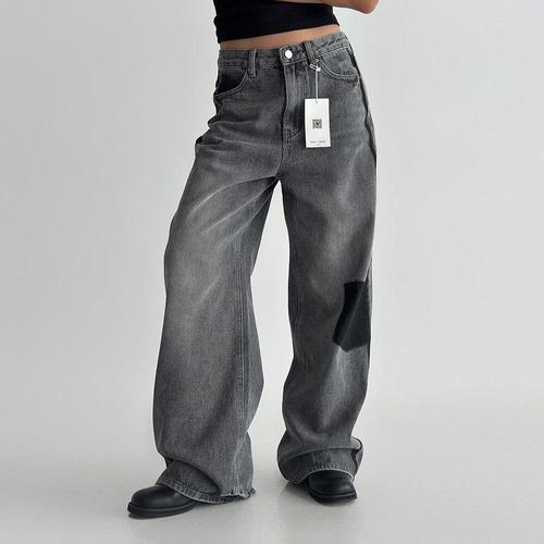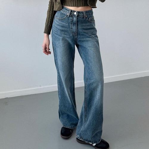 [기타브랜드]워싱 와이드 데님 팬츠 빈티지한 무드의 트렌디 여자 청바지