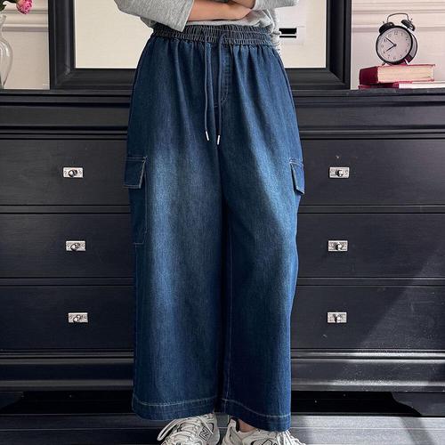[기타브랜드]여자 카고 포켓 데님 팬츠 와이드핏으로 편한 데일리룩 청바지