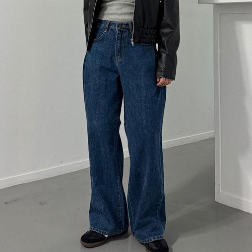 [기타브랜드]여자 다크워싱 와이드 데님 팬츠 내추럴한 데일리 캐주얼룩 청바지