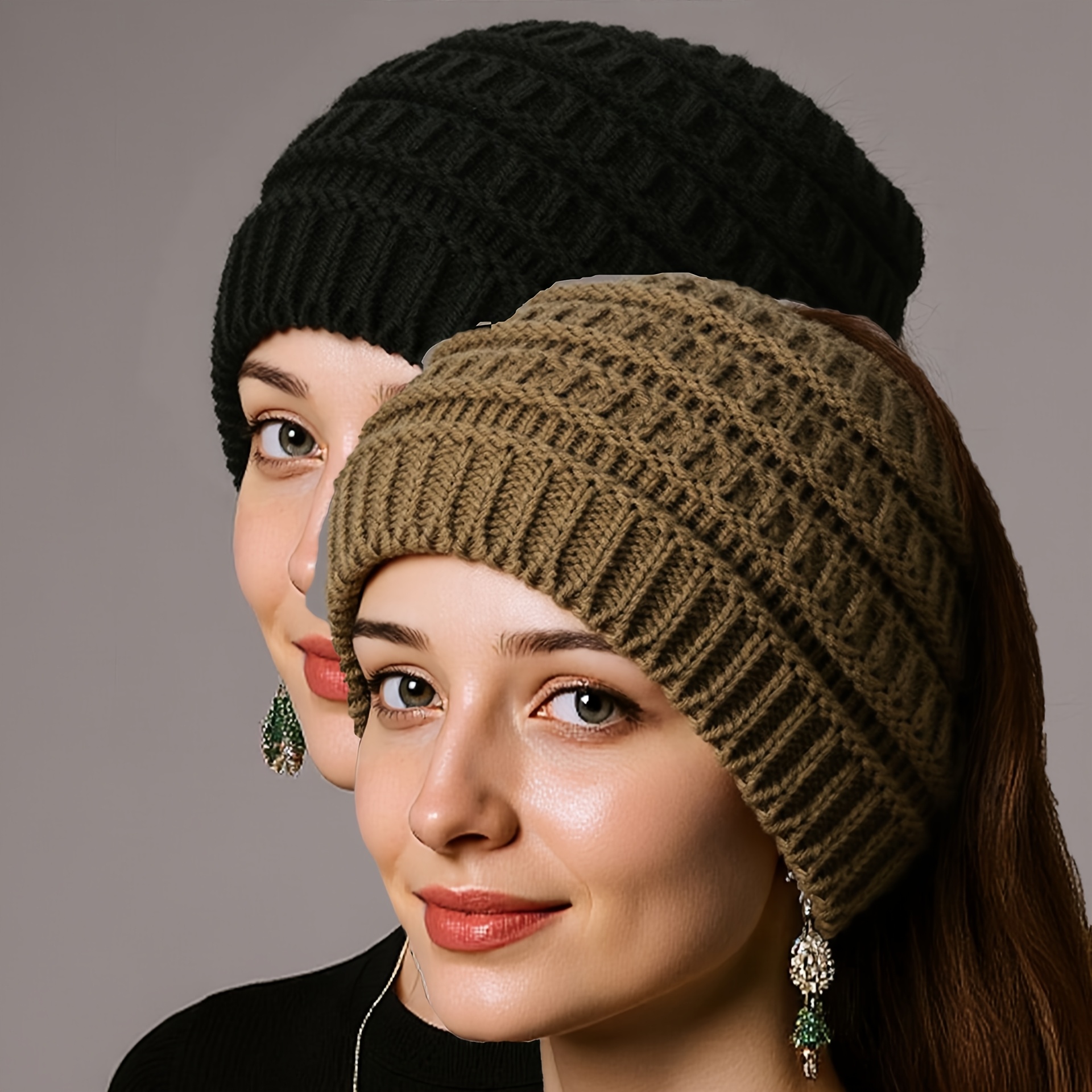 TEMU 2개 여성용 플러시 겨울 모자 - 몽골 스타일 인조 소재 부드럽고 따뜻한 비니 세트, 통기성 좋은 추운 날씨용 야외 활동 (블랙/브라운), 손세탁 가능 비탄성 핏, 크리스마스 & 새해 선물 (건조기 사용 금지) - 이상적