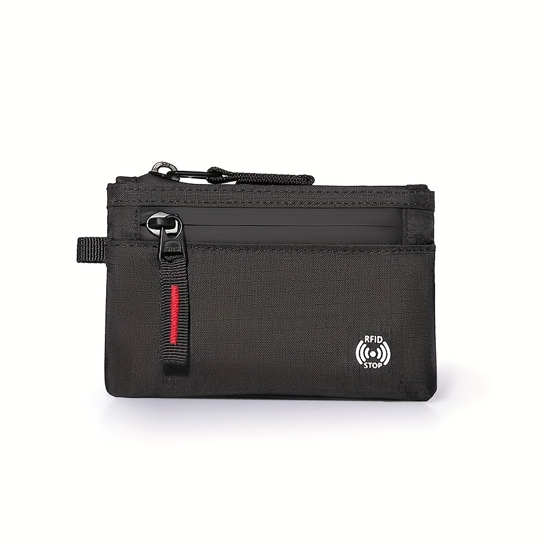 TEMU RFID 차단 슬림 지갑 - 남성과 여성용 컴팩트 크레딧 카드 홀더와 지퍼 동전 지갑, 블랙 디자인, 내구성 있는 직물, 다중 컴파트먼트, 가벼우면서 휴대하기 편리한 작은 지갑, 가벼운 지갑 | 지갑 | 지퍼 지갑