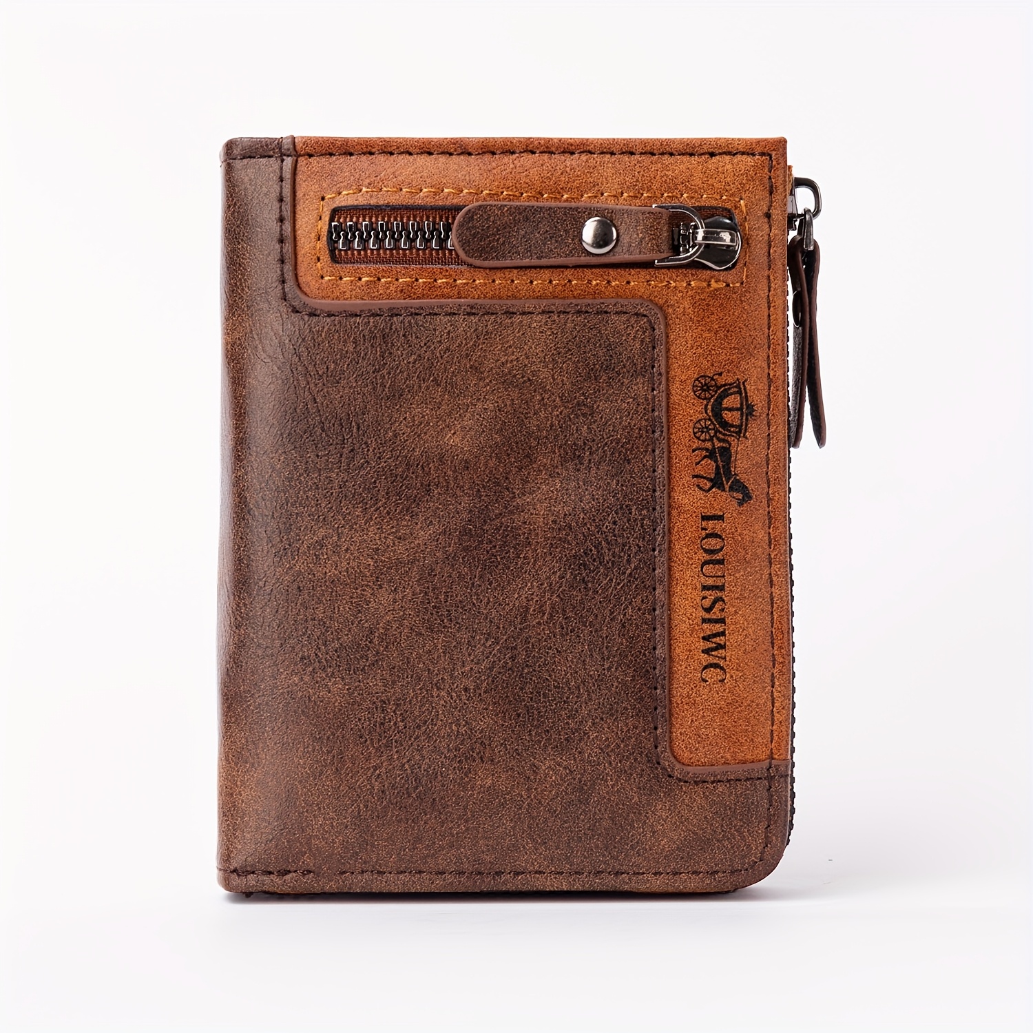 TEMU 남성용 스타일리시 짧은 지갑 - LOUISIFS PU 가죽 카드 거치대 및 동전 지퍼 포켓