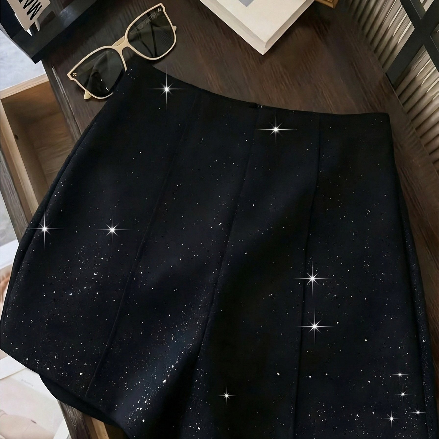 TEMU 세련된 신상 봄/여름 여성용 반바지, 고급스러운 블랙 글리터 슬림 반바지, 블랙 반바지, 파티 미니 반바지, 여성 겨울 의류, 여름, 봄, 발렌타인데이, 로맨틱, 데이트, 해변, 결혼식, 생일, 외출, 우아한 캐주얼