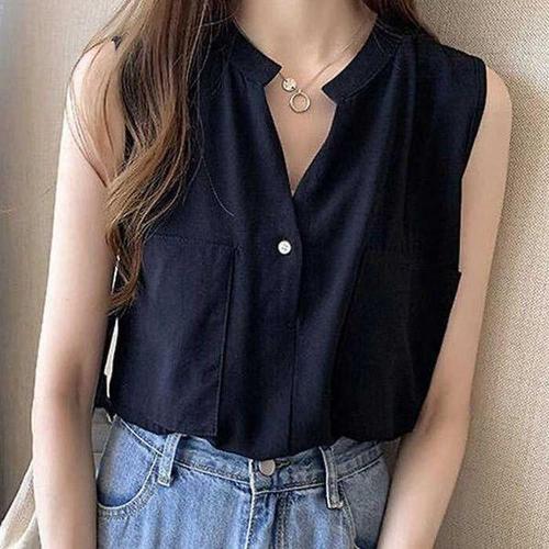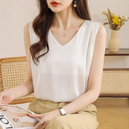 [셀러허브_여성트랜드패션]ONM 브이넥 민소매 블라우스 여성 여름 나시 오피스룩