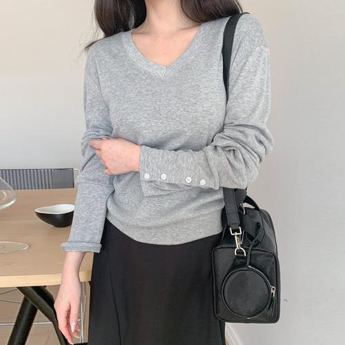 [시크블랙]메프기 루즈핏 브이넥 버튼 롱슬리브 티셔츠