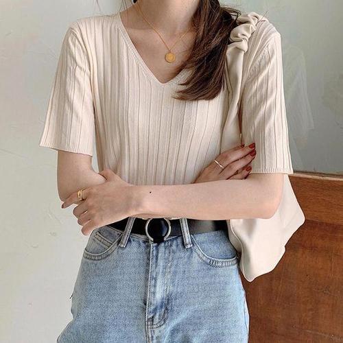 여름 여성복 반팔 루즈핏 캐주얼 브이넥 티셔츠