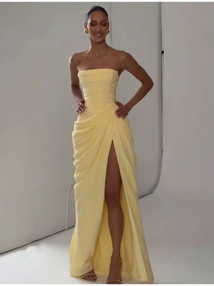 여성용 우아한 민소매 백리스 플리츠 드레스, 섹시한 솔리드 슬링, 미디 원피스, 2024 여성 파티, 이브닝 A라인 로브, 여름