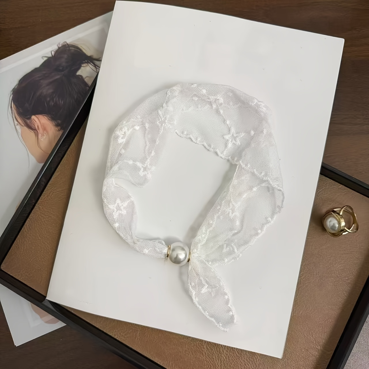 TEMU 1개입 오각별 레이스 자수 리본 마그네틱 클립 목도리, 새로운 패션 액세서리 스카프, 목 리본, 머리끈 헤드밴드, 의류 및 직장복 장식용 다목적 스카프, 고급 목도리, 체인 스카프 밴드