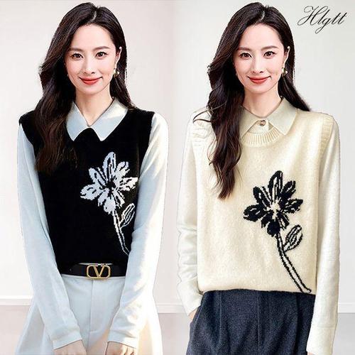 [헬리꽁땡](55~77)2종세트 수선화플로럴 니트베스트 겨울가디건 간절기가디건 겨울니트 니트티 브이넥 카..