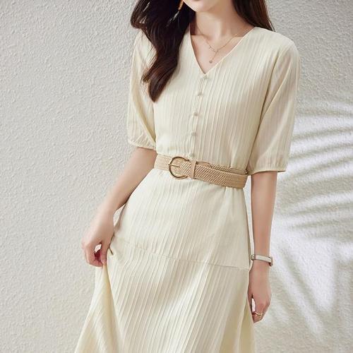 [BZG72JN2_49]캉캉 플레어 브이넥 세로 원피스 봄원피스
