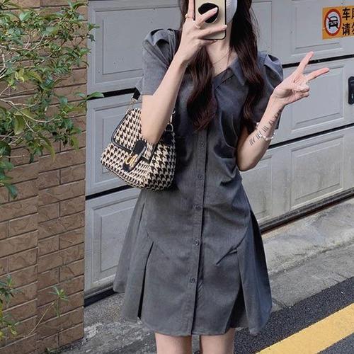 [디어로우]어벤느 브이넥 핀턱 셔츠 미니 원피스