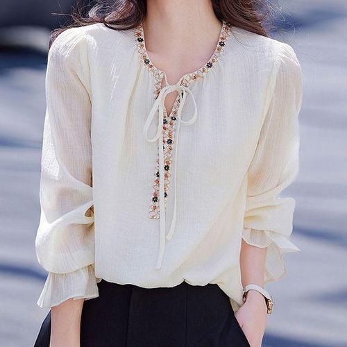 [블랙퀸]엔티크 자수 디테일 타이 블라우스 blk004688