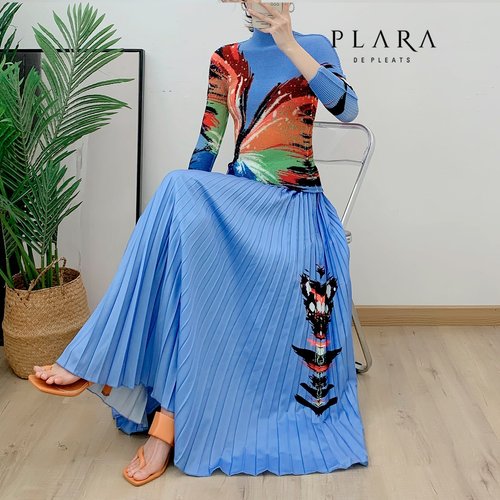 플라라 (88까지)하프넥플리츠스노우플라이블라우스+스커트SET