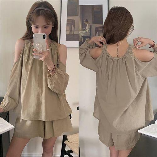 HOTBBA / 어깨트임 블라우스 치마반바지 투피스 LL_1003085