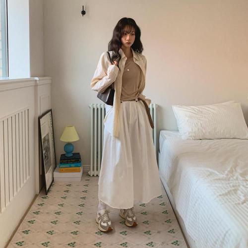 [옷자락] 여자 우아한 데일리 데이트룩 핀턱 밴딩 롱스커트