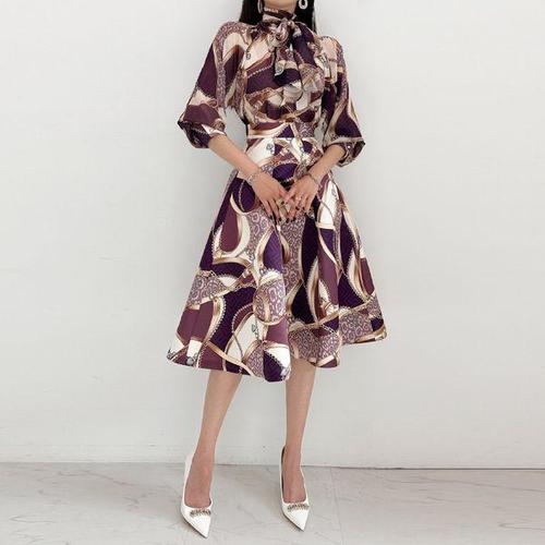 봉봉 투피스 미시 블라우스 세트 하객룩 겨울 모임 결혼식 셋업 정장 롱스커트 밴딩 가을