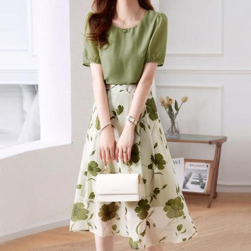 [막스까르띠지오][패션플러스 단독상품] 나일론 반팔 셔츠 롱스커트 세트