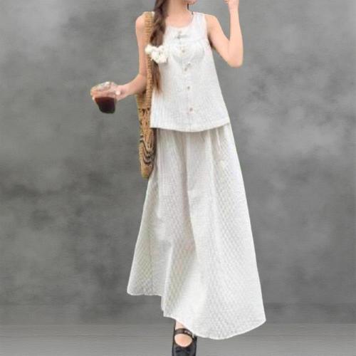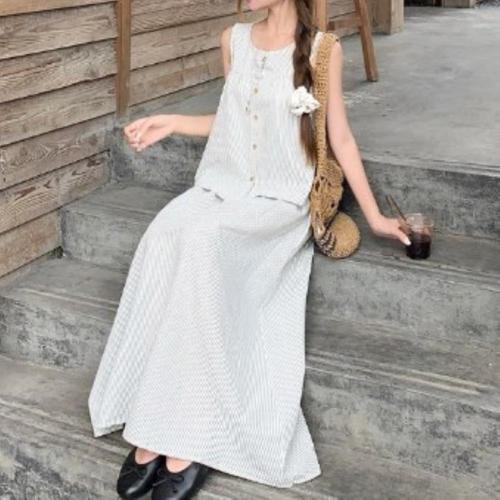 [다잇템]여성 슬리브리스 잔주름 긴치마 세트
