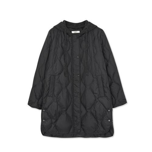 [유닛]롱 길이 니트 후드 나시서스 다운 재킷 (UFKWJA46IT-BLACK)