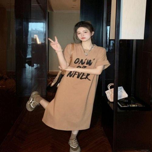 여성용 캐주얼 롱원피스 여름 데일리 레터링 블랙 드레스 WFLLOZN