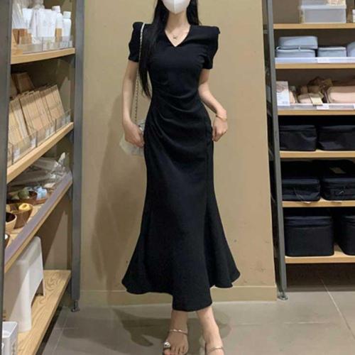 여름용 블랙 롱원피스 시크 스타일 데이트 의상 WFLLOEY