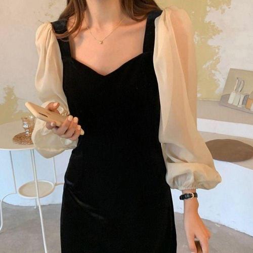 [오너클랜]인기상품 여성 머메이드 퍼프 소매 롱원피스 블랙 1P A라인 [WFLLSCG_260305]