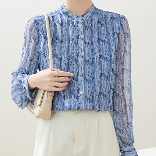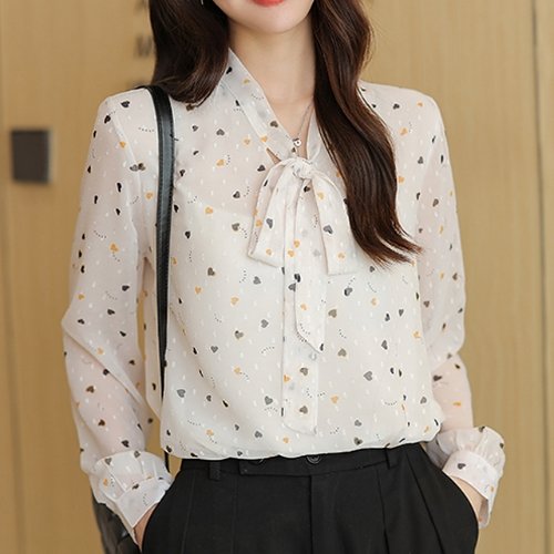 [블랙퀸]조제피 미니패턴 시스루 블라우스 blk003064