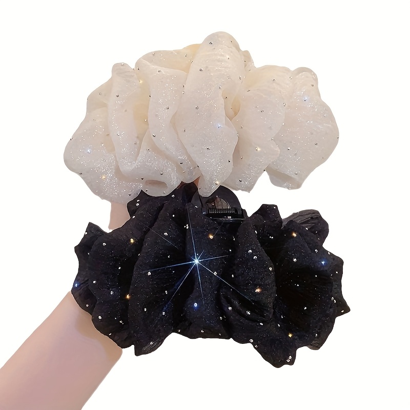 TEMU 여성을 위한 2개입 물방울 별빛 하늘 버블 헤어 클립, 번 헤어스타일에 적합, 리본 장식 및 상어 클립 특징