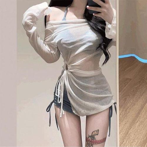 [에이치플러스몰]3pcs블루나염 비키니세트 커버업