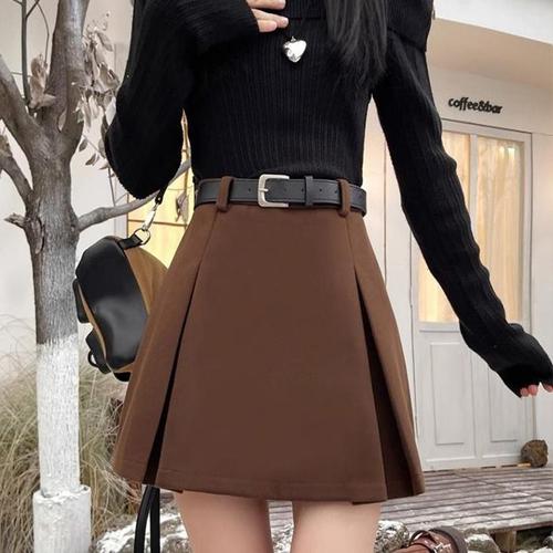 벨트세트 울모직 A라인 하이웨스트 미니스커트 WFL0ANE