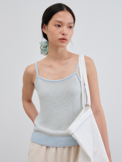 [망고매니플리즈] 센 스트라이프 니트 슬리브리스 (라이트블루)