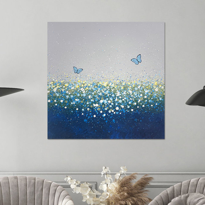나비와 데이지 캔버스액자 알루미늄액자 감성 인테리어 핑크 블루 봄꽃 포스터