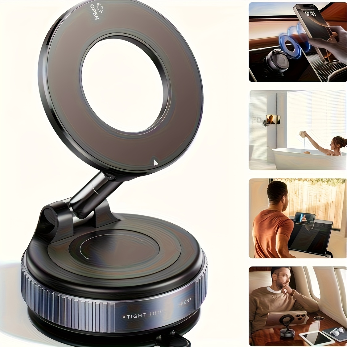 TEMU 360° 회전 자석 휴대폰 홀더, 접이식 및 텔레스코픽, 아이폰 16/15/12 호환, ABS 소재, 방수 불가, 실내/욕실/헬스장/매끄러운 거울용, 원피스 사이즈, 블랙, 핸즈프리 사용, 다목적 마운트, 컴팩트 디자인, 내구성 강화, 휴대폰 스탠드, 헬스 액세서리, 아이폰 사용자