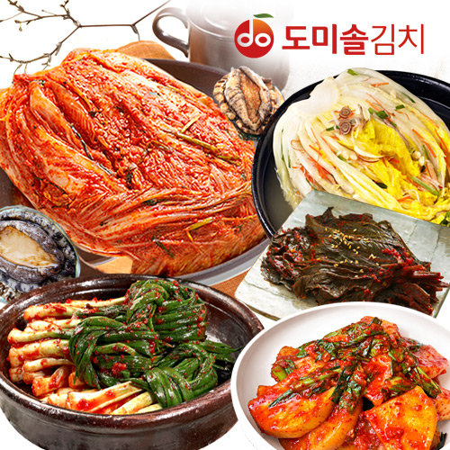 [도미솔/5종 11.5kg]포기김치5kg+갓석박지2kg+백김치3kg+파김치1kg+깻잎김치500g