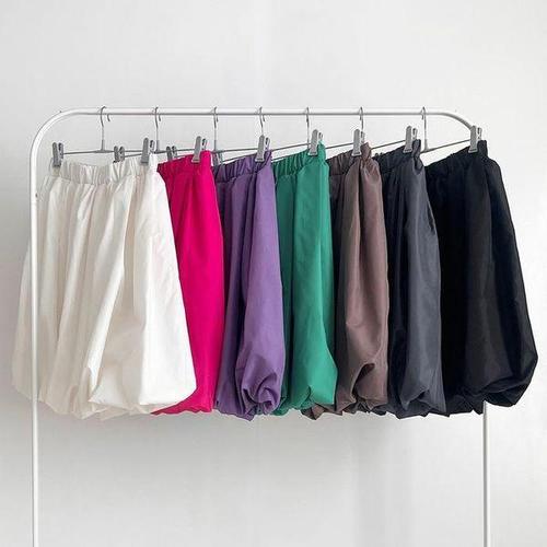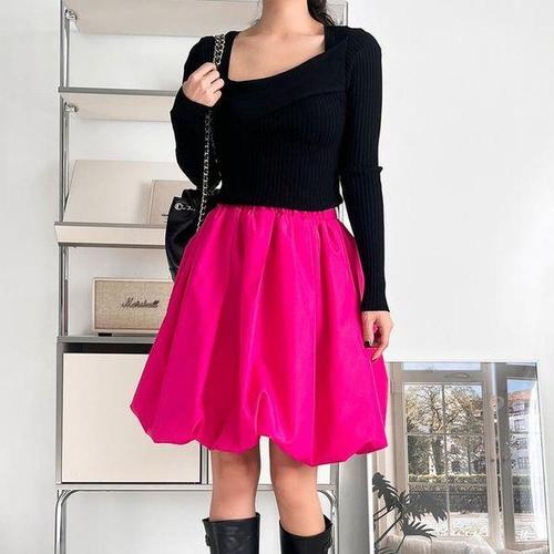 [셀러허브_여성트랜드패션]여자 셔링 비비드 벌룬 플레어 핑크 미니스커트