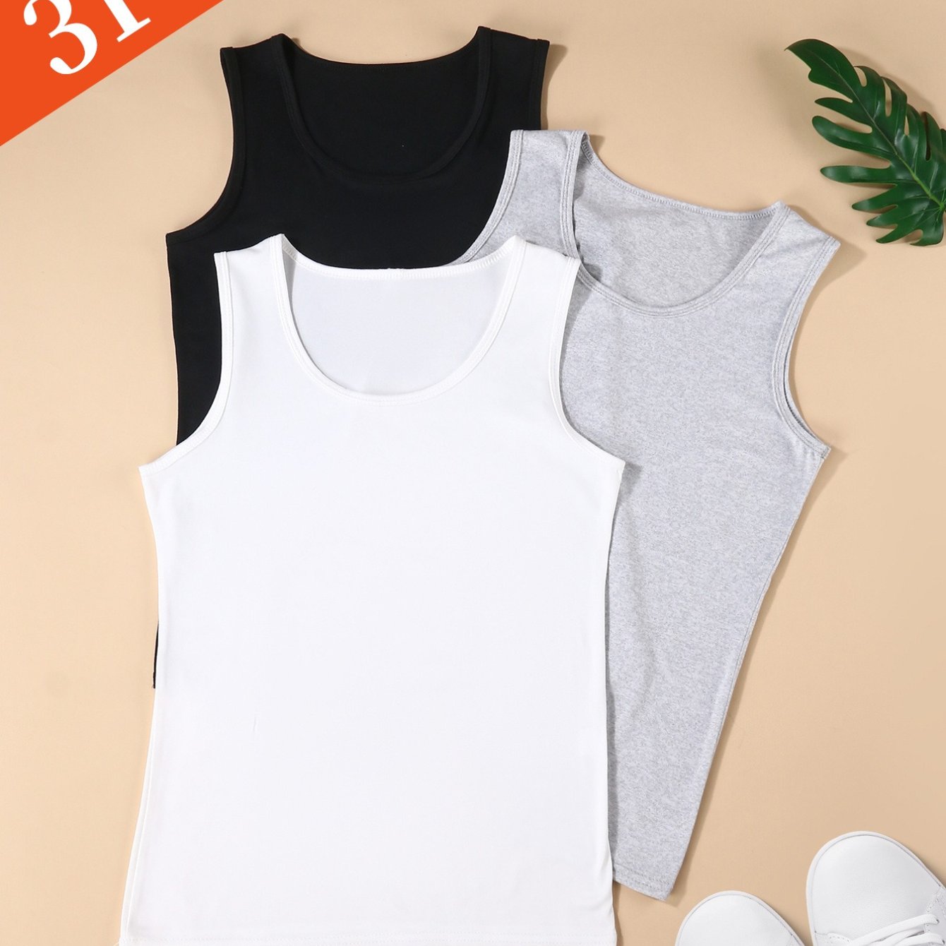 TEMU 여성용 여름 민소매 상의 3종 세트. 캐주얼하고 활용도 높은 디자인, 솔리드 컬러의 기본적인 라운드넥이 특징입니다.
