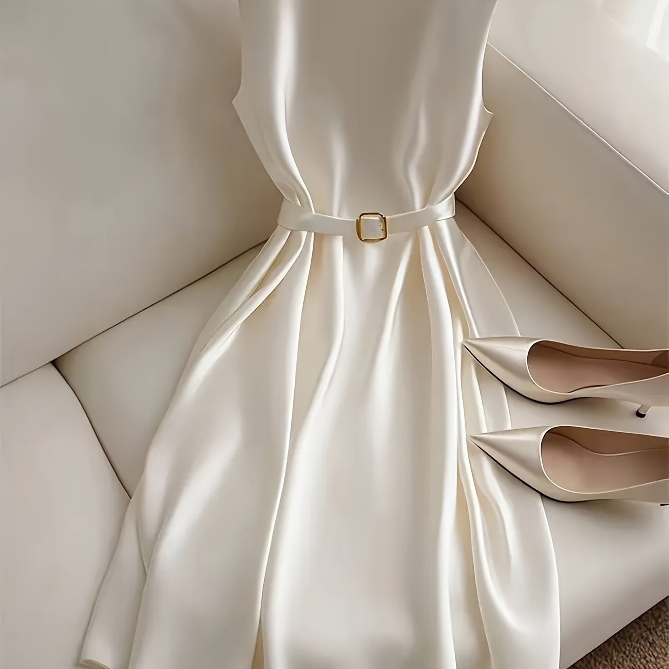 TEMU 여름용 솔리드 컬러 우아한 민소매 드레스