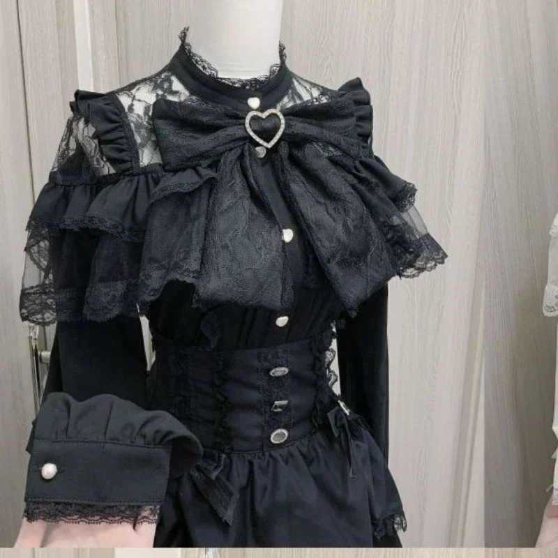 2025 가을 일본 카와이 로리타 레이스 패치워크 블라우스 하라주쿠 스위트 JK 보우 탑 캐주얼 하라주쿠 경량 셔츠 여성용