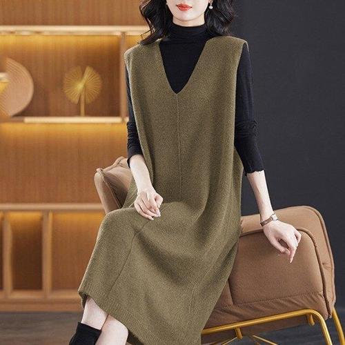 [핑크엘리제]브이넥 루즈핏 민소매 코넬로니트롱원피스