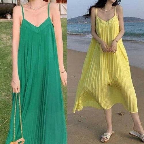 [에이치플러스몰]여성 쇄골라인 나시 롱원피스 1P V넥 A라인 바캉스