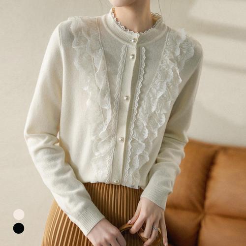 [신상오픈런]아푸로 단추 가을 여성 스웨터 비즈펄 윈터 가디건 라운드